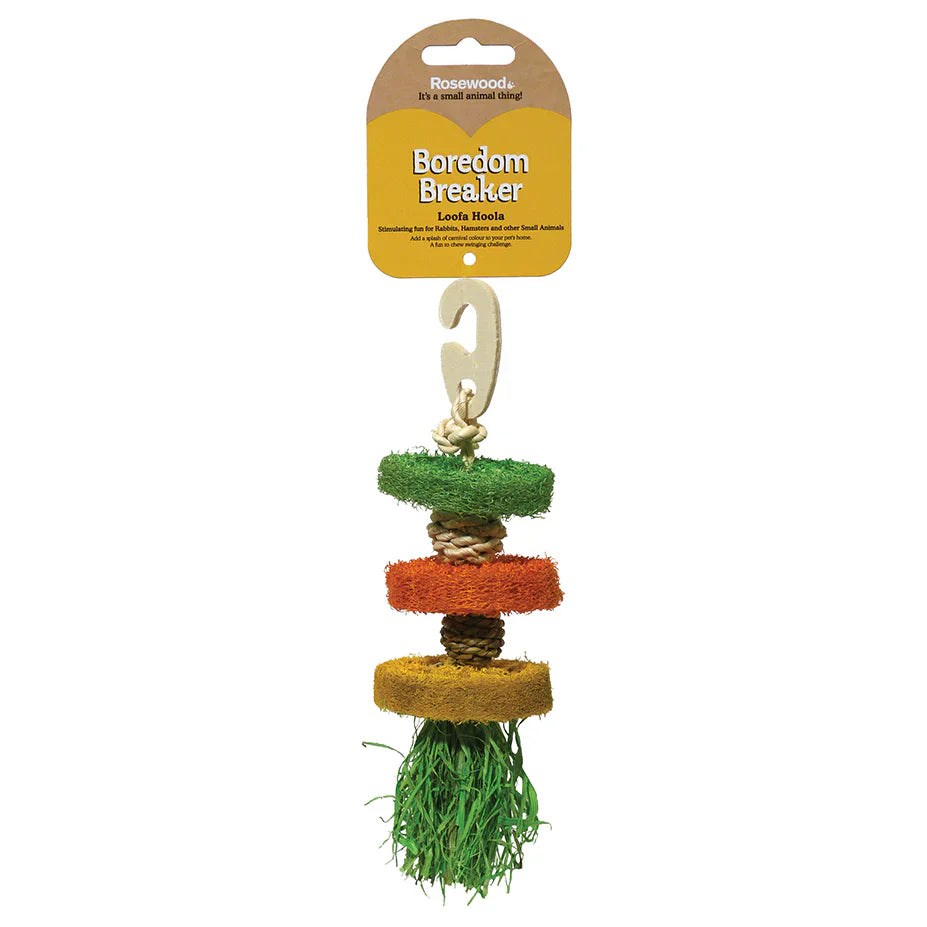 Unit price perRosewood's Boredom Breaker Loofa Hoola is a natural loofa and corn leaf hanging toy. Fun for all small animals including rabbits, guinea pigs and hamsters.