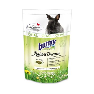 Bunny Nature Rabbit Dream Oral is formulated specifically for rabbits with dental problems. This is complete and natural animal food for rabbits and is rich in fibres (21%). The pellets are made from 42 different grasses and plants. They also contain herbs such as camomile, mint and sage, which help to sooth irritated gums. All natural ingredients come from natural meadows. The food also has an optimal crude fibre to starch ratio (3.3 : 1) to help prevent fattening.
